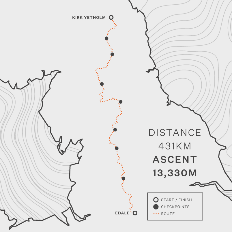 Cette course de 268 miles, soit environ 420km, traverse le Pennine Way en Angleterre, du sud au nord, se terminant à Kirk Yetholm à la frontière écossaise, traversant certaines des parties les plus isolées du pays dans des conditions souvent brutales.