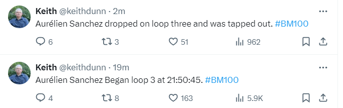 Maxime a commencé sa troisième boucle après 21h01 de course suivi de près par Albert à 21h08. Il reste deux français en lice, les deux « virgin ».
