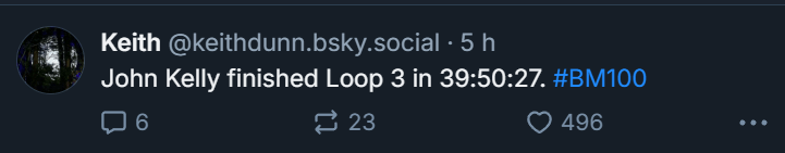Lui emboitant le pas John Kelly a terminé la deuxième boucle en 25 heures et reparti dans la foulée (10 minutes entre les deux messages de Keith) !
